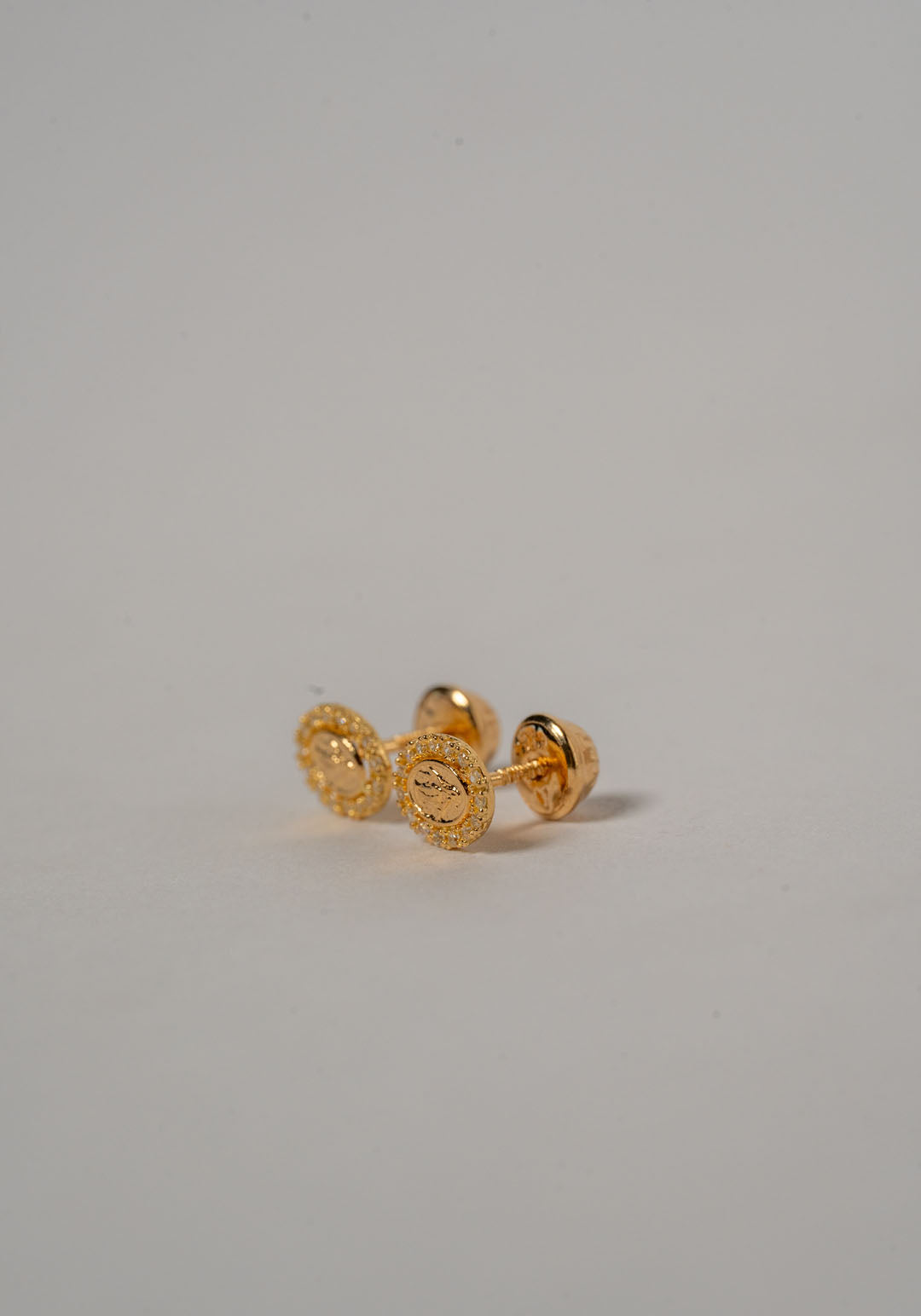 Topos Virgen Milagrosa en oro amarillo de 18k, realzados con circones que iluminan el diseño...