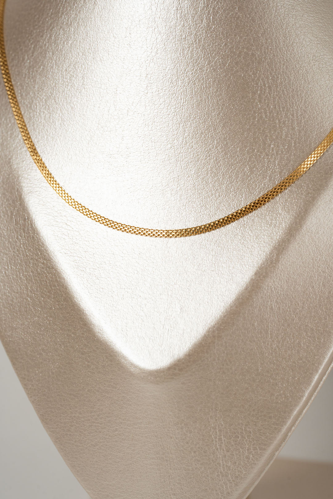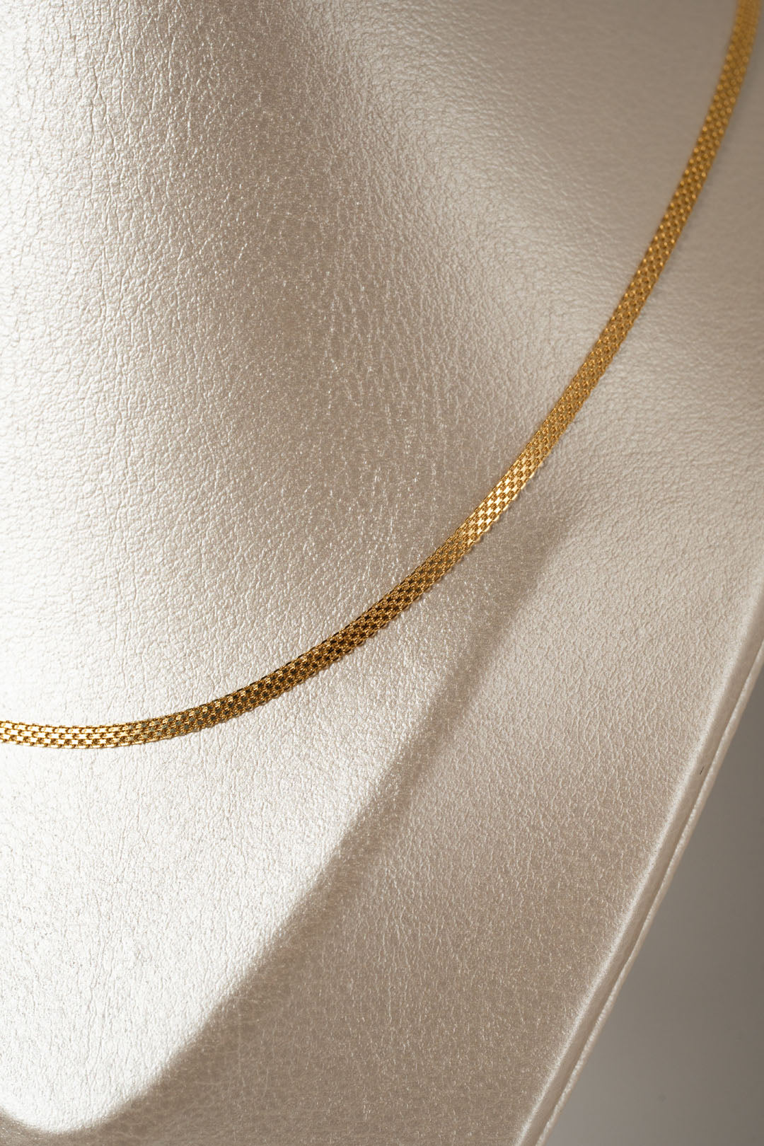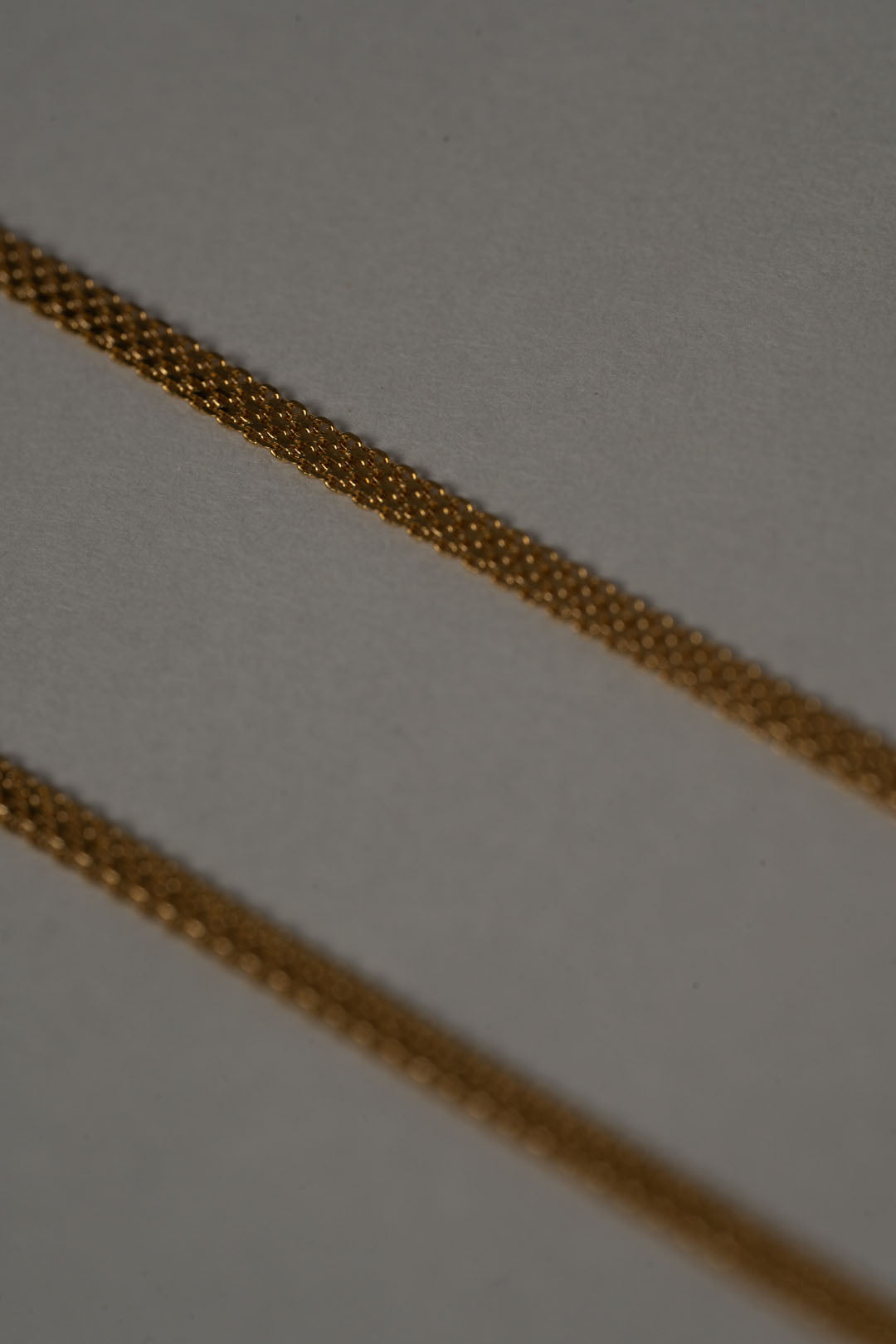UN TEJIDO FINO Y CONTINUO DE 45CM DE LARGO, UNA CADENA QUE REALZA SU BRILLO CON LA LUZ, COMBINA FUERZA, BRILLO Y SOFISTICACION