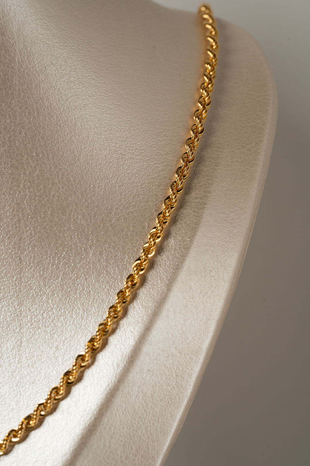 FORMADA POR ESLABONES ENTRELAZADOS CON UN SUTIL GIRO QUE CREA UN EFECTO DE BRILLO CONSTANTE