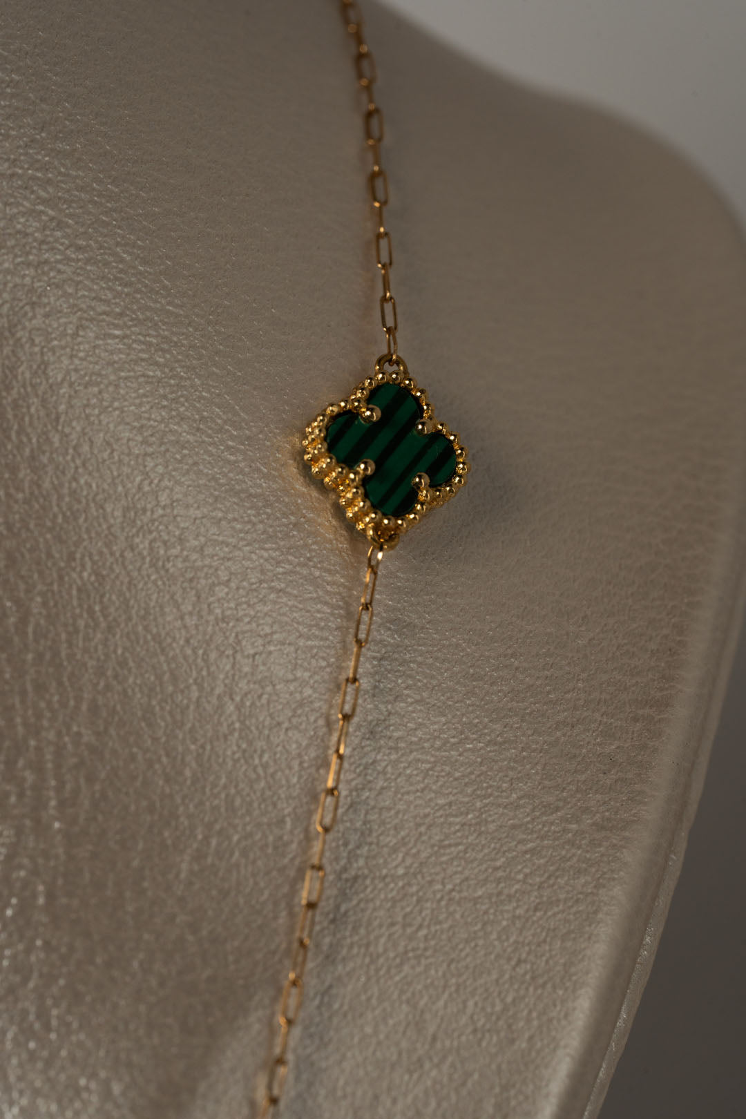 UNA CADENA DE 50CM MUY SOFISTICADA QUE ALTERNA FINOS ESLAVONES CON TREBOLES VAN CLEEF EN COLOR VERDE SIMBOLO DE SUERTE