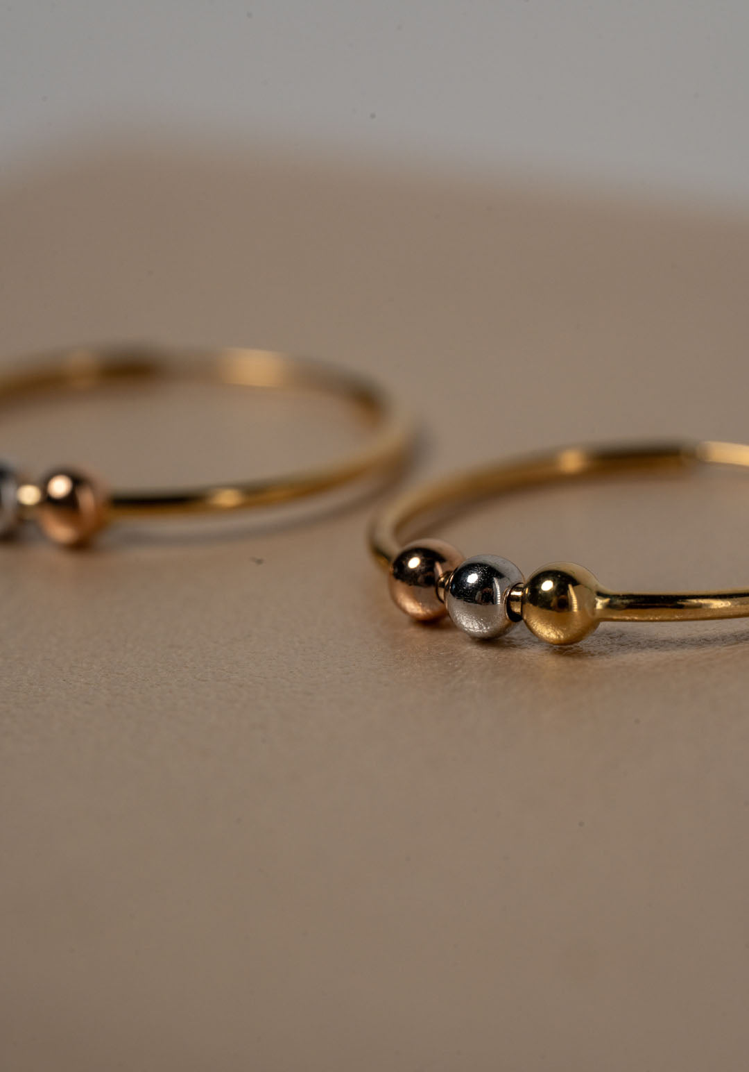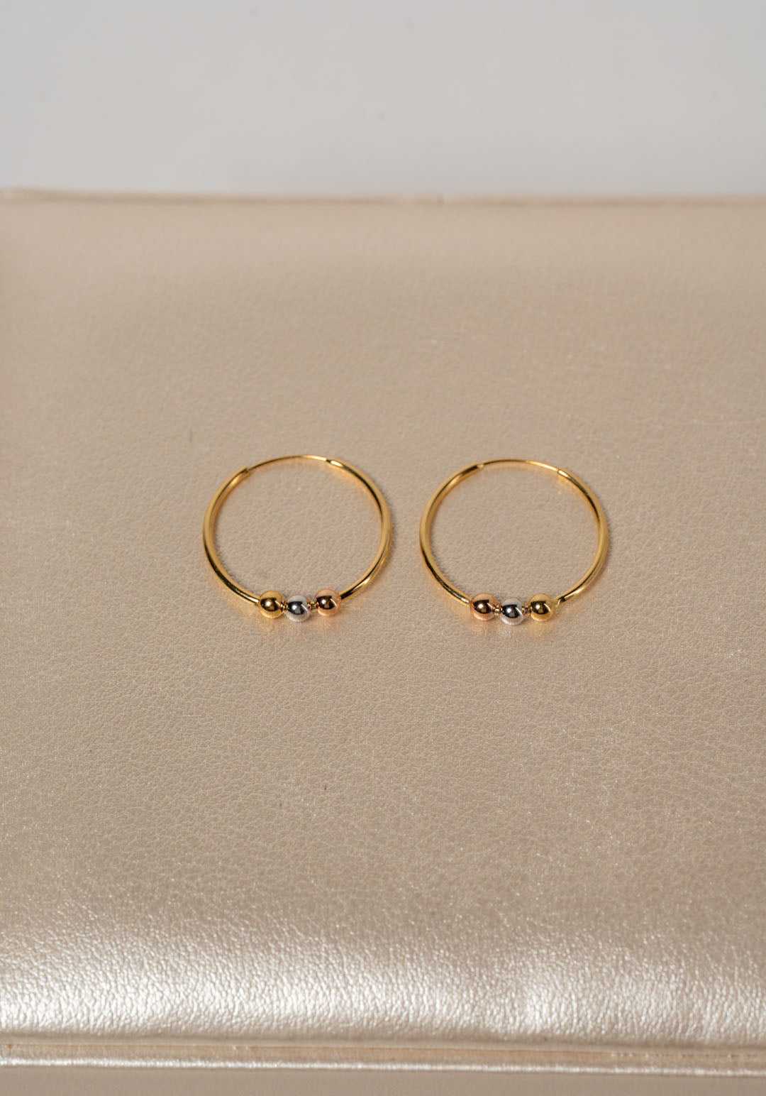 DELICADA Y MODERNAS UNAS CANDONGAS FINAS CON LOS TRES OROS CREANDO UN CONTRASTE SUTIL Y ENCANTADOR