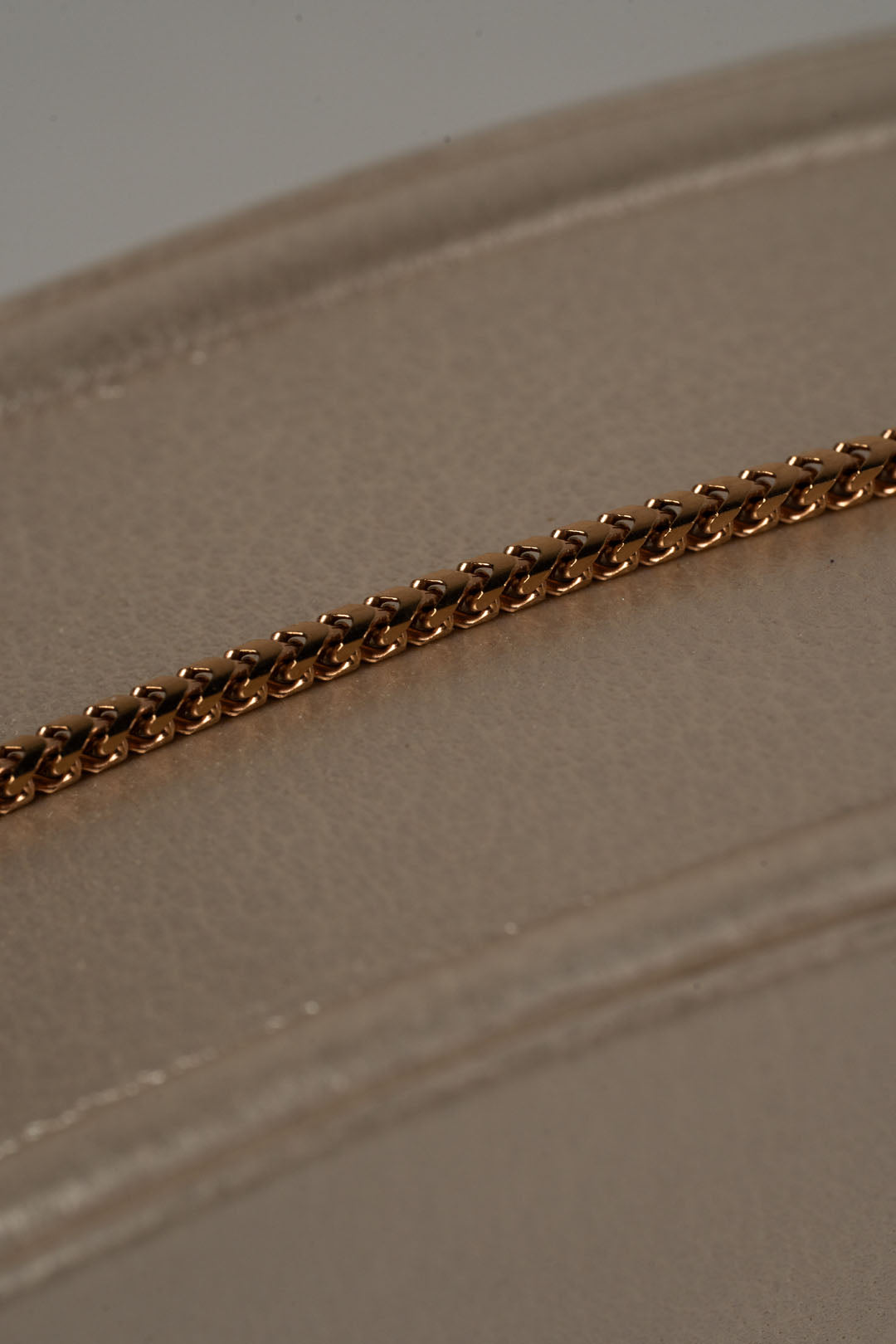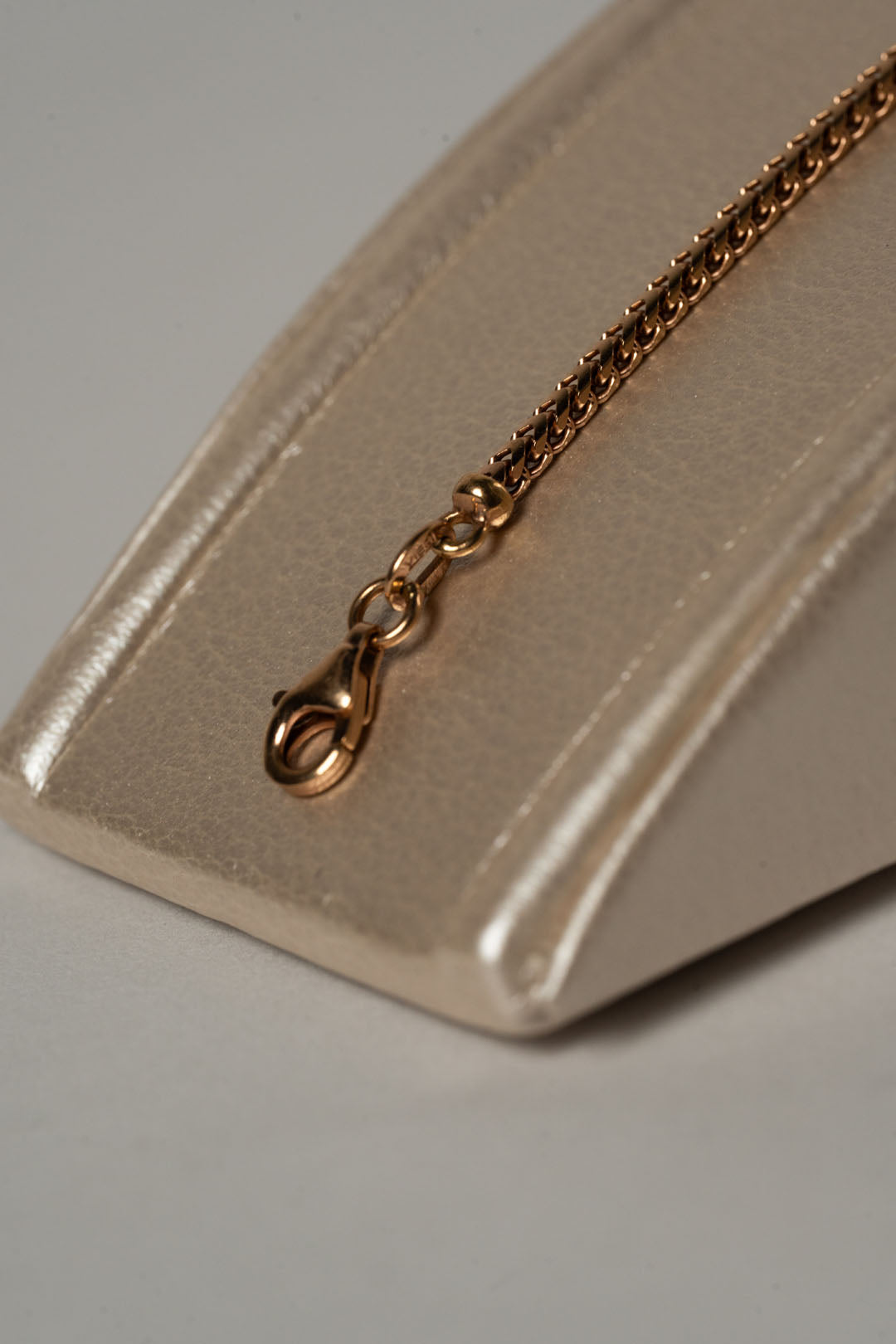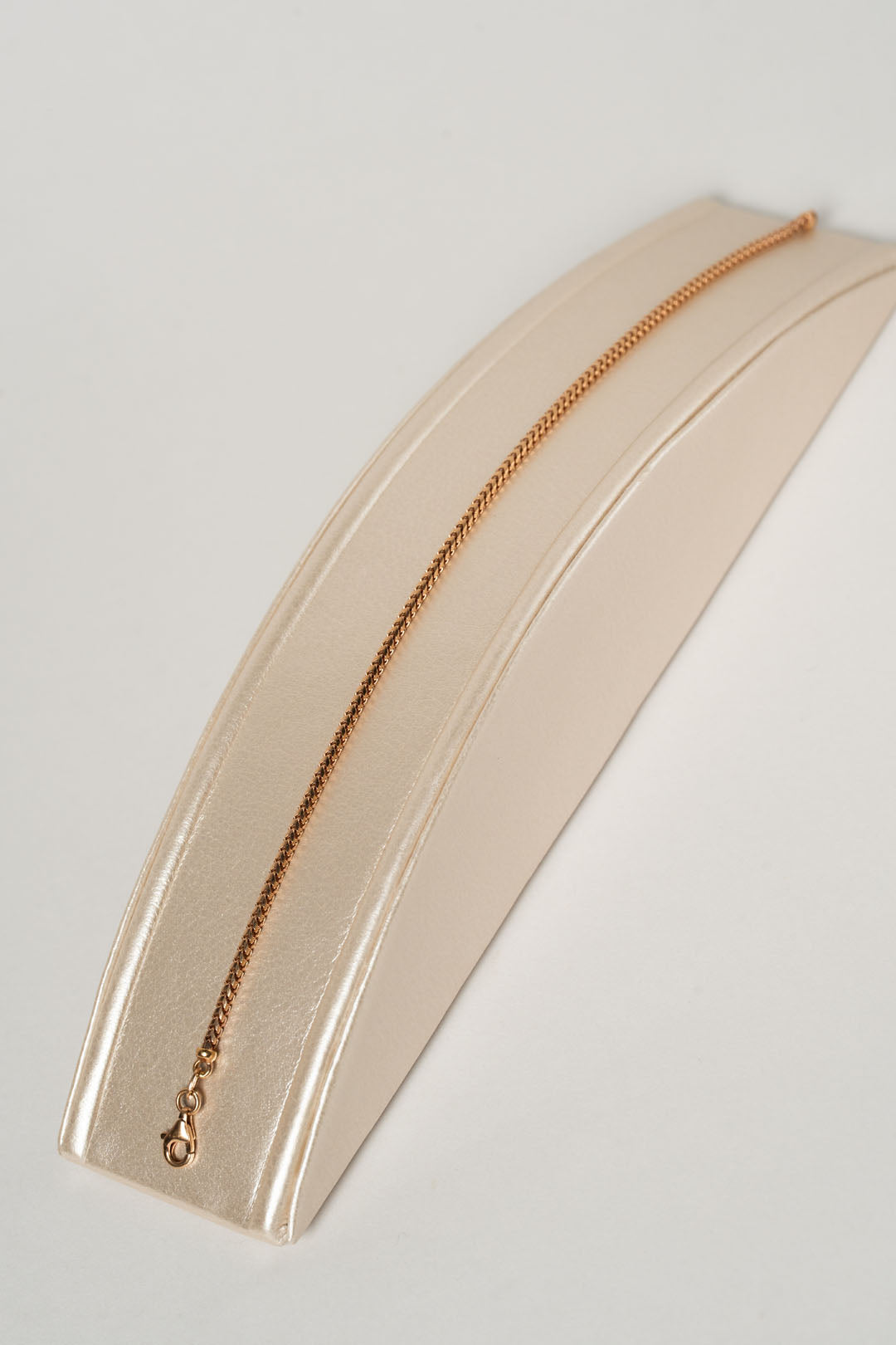 UN TEJIDO COMPACTO Y ELEGANTE QUE DESTACA POR SU FIRMEZA Y BRILLO,SU TONO EN ORO ROSA LE APORTA MODERNIDAD Y DELICADEZA