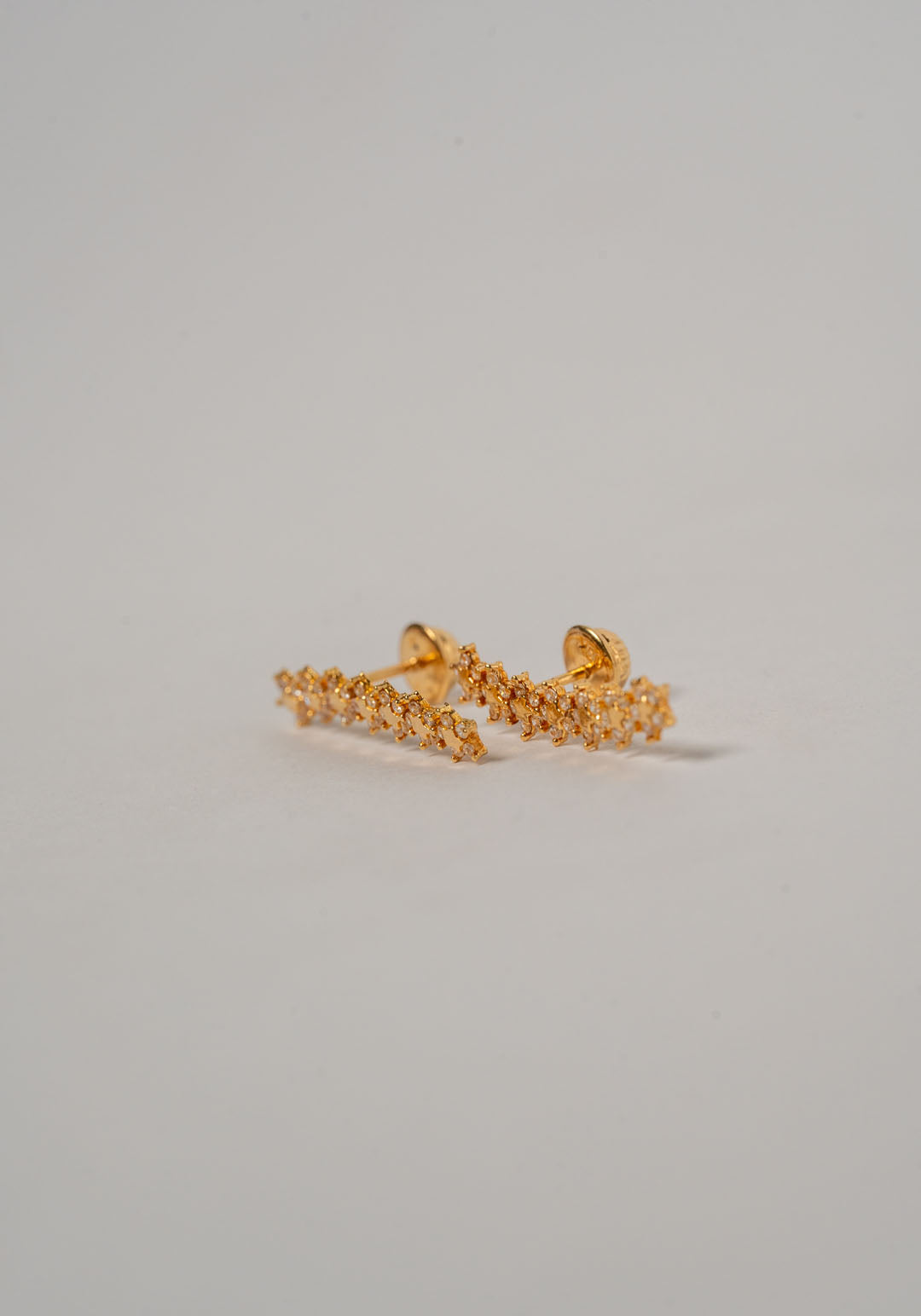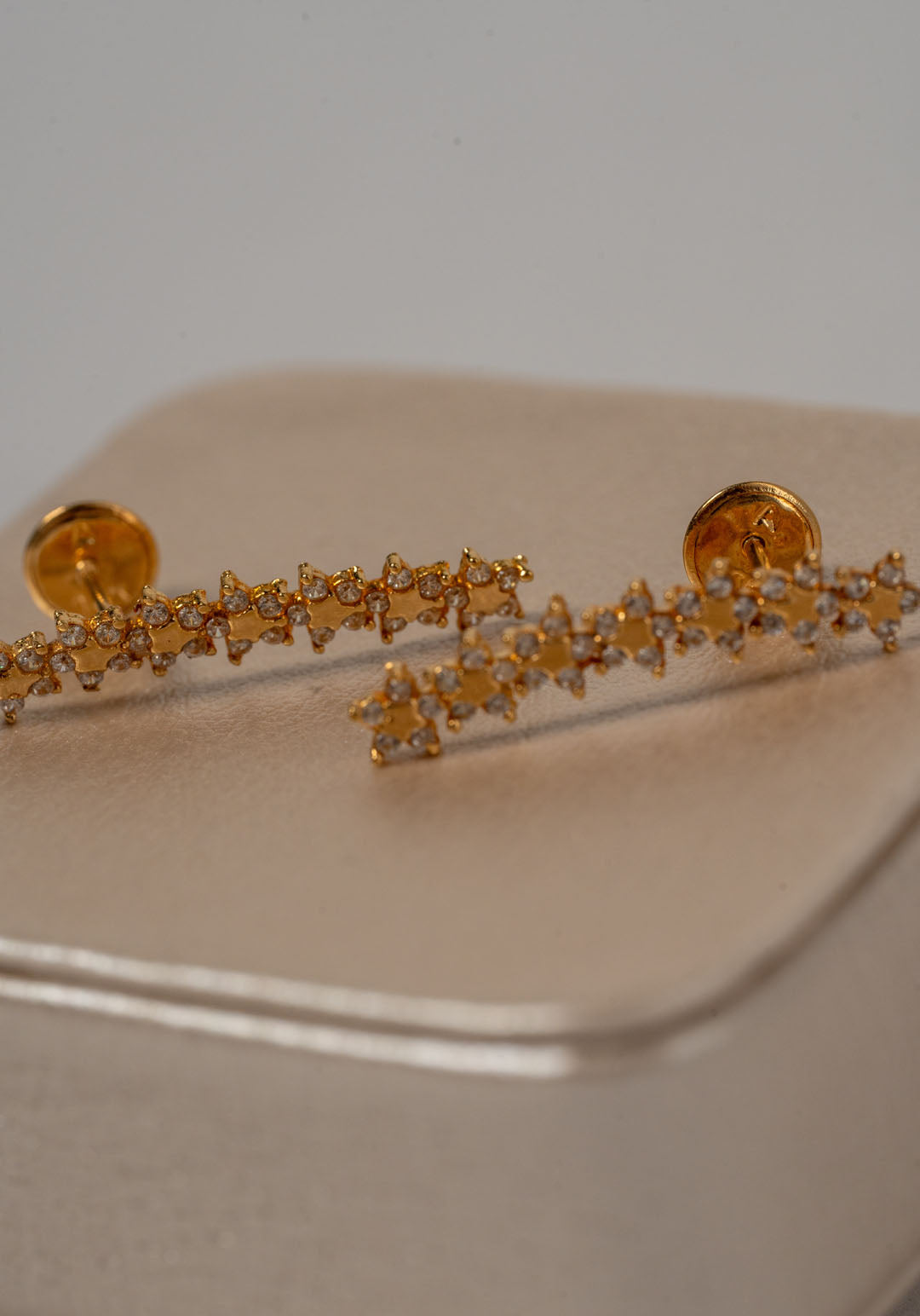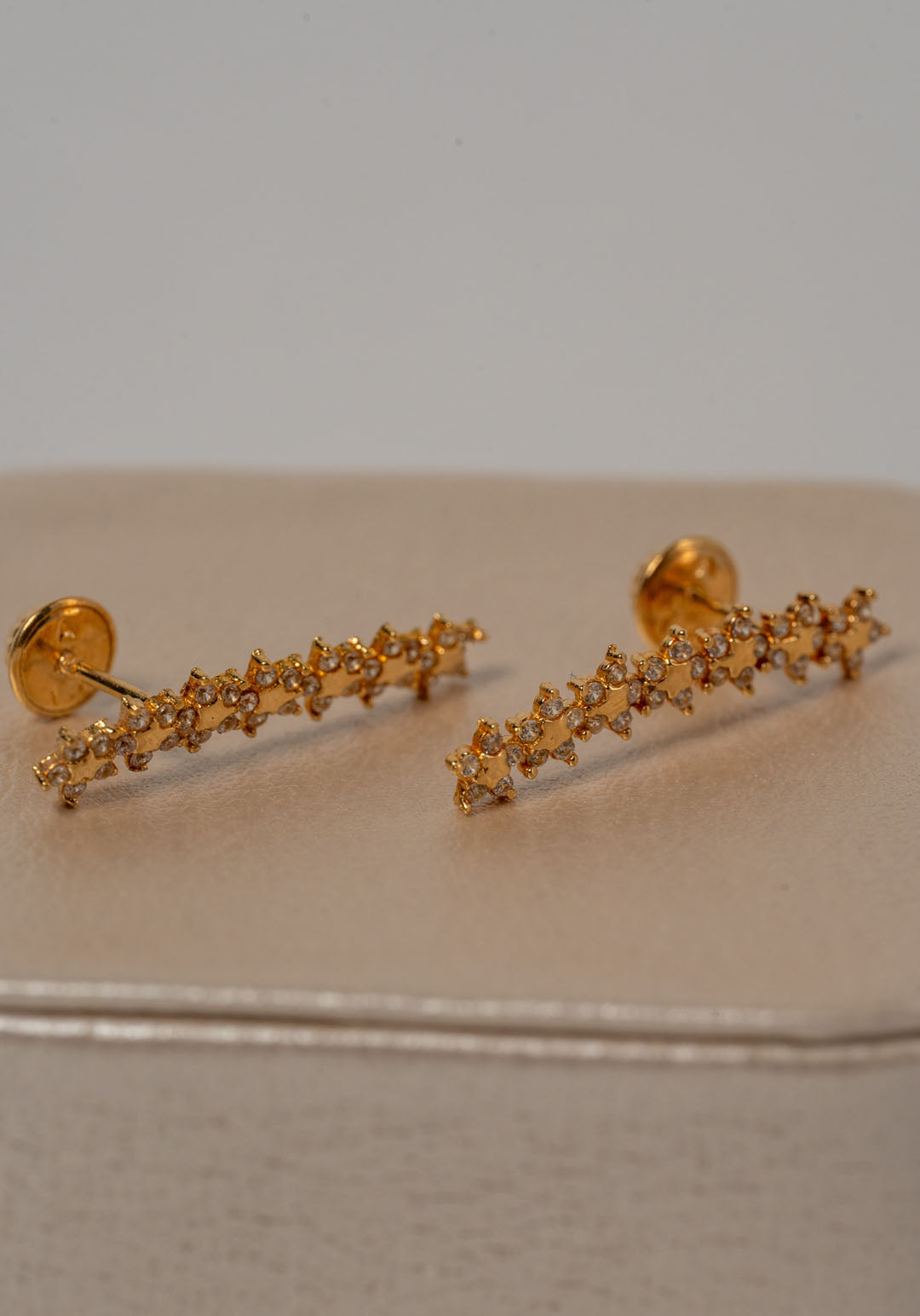 Topos en forma de estrella en oro amarillo de 18k, realzados con circones que iluminan con un brillo sutil y elegante.|